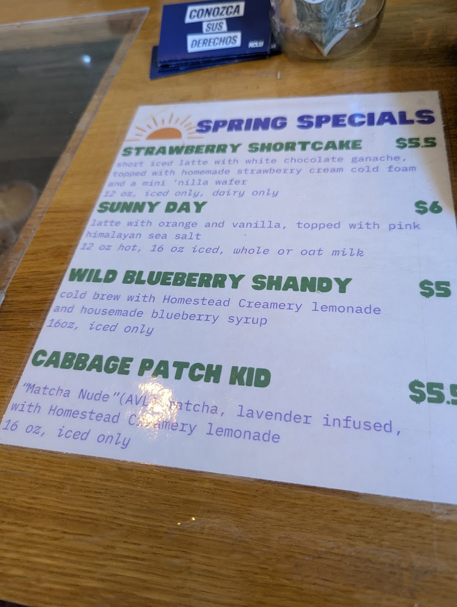 “ I needed to take a work call and grab something to drink, so I picked the closest coffee shop with the best rating, and I was not disappointed! The way I came in off the highway had the shop on my right, but I passed it the first time as the signage doesn't stand out if you aren't from the area. Coming back from the left made getting in and finding a parking space a little difficult. The layout of the shop is nice, and I found a great spot to get some work done and enjoy my matcha lemonade (Cabbage Patch Kid) and blueberry scone. I'm not sure if it was the WiFi or my laptop, but I did have some trouble with my video call. But, hey, it is free LOL Service was friendly, but I was surprised I was not offered a warmed up scone. Not sure if that is an option. Would definitely stop in again the next time I'm passing through! ”